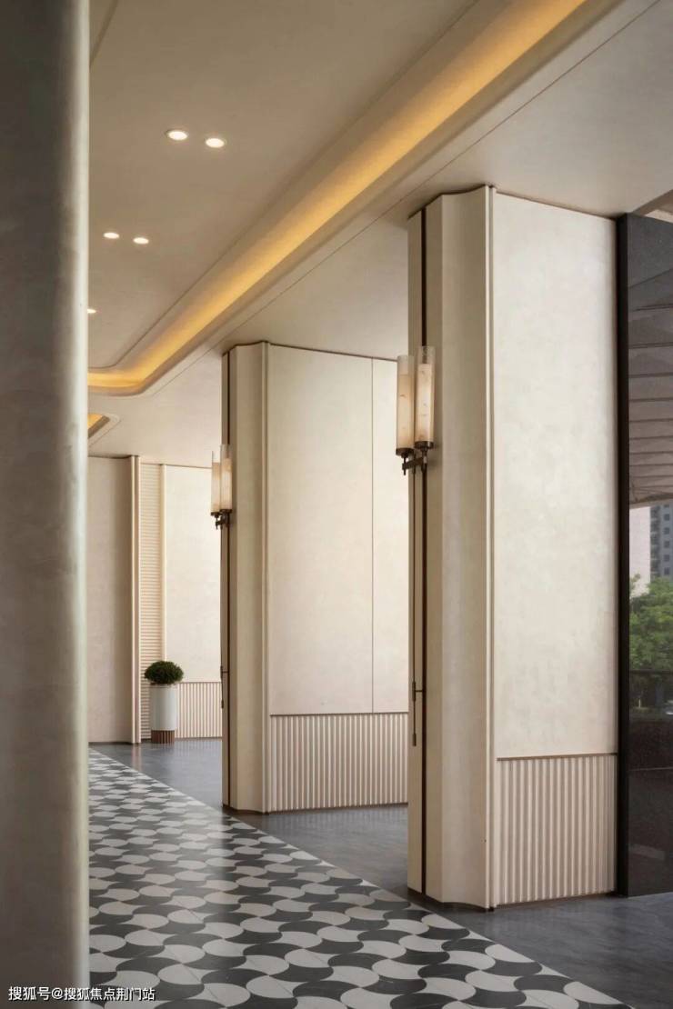 其创新性在入口处展现得淋漓尽致:常规沿街楼栋通常直接由物业用房过渡至住宅二层,但该项目在物业用房上方特别增设了架空层,形成"物业用房-架空层-住宅二层"的独特空间序列。这一设计突破性地通过地面整体抬升,不仅解放了沿街楼栋原本受限的架空层空间,更创造出尺度恢弘的入户大堂,使归家动线在垂直维度上获得仪式感的升华。
