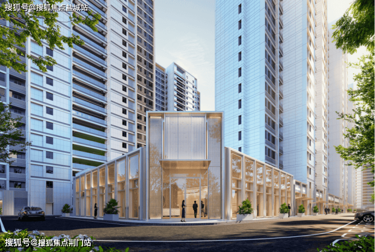 现代简约建筑风格,采用大面玻璃搭配铝板保温一体板,打造“轻盈不失雅致”的隐贵立面。钢琴键般的立面层次感、香槟金铝板塔冠,形成瞩目的城市标识。