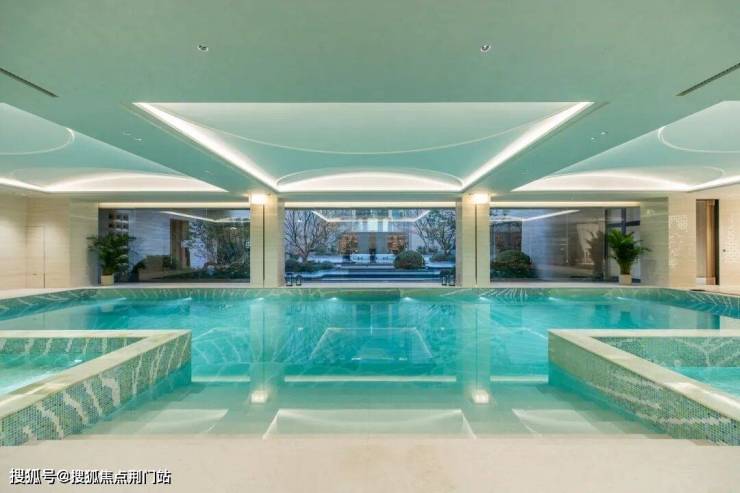 室内恒温泳池、健身房、室内高尔夫、私宴厅、茶室等高端会所配套俱全。3000㎡地下会所,融合了良渚玉琮纹样与现代材质,天珺为其取名:玉石枫林会所。