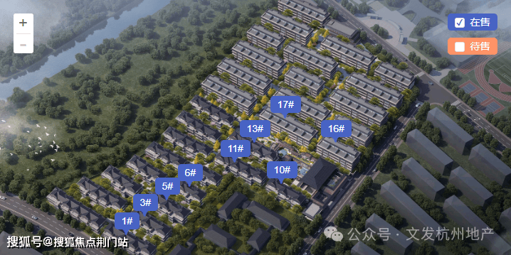 项目定位为高端排屋及叠排社区,建筑设计以新宋风为特色,融入超山宋梅古韵的历史人文底蕴;整体布局以中央山水景观轴为骨架,营造“一轴一带八景十巷”的多进式园林体验。