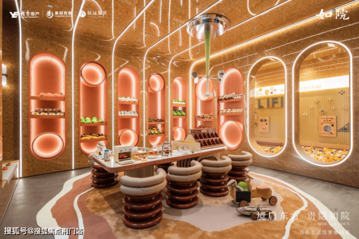 结合架空空间,创新设计了地面“日咖夜酒”等泛会所,而在地下又融合了私宴厅、恒温泳池、健身房、书吧等多元会所;除了地上归家大堂外,依据车行归家的生活习惯,增设奢阔穹顶车马厅,双动线礼序;虽是地下空间,但处处借景自然,光影流转,皆是东方园林的当代转译。