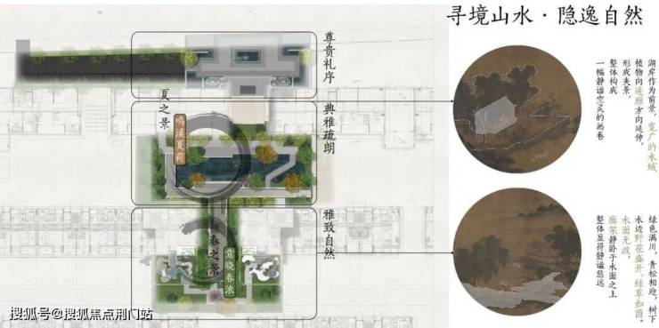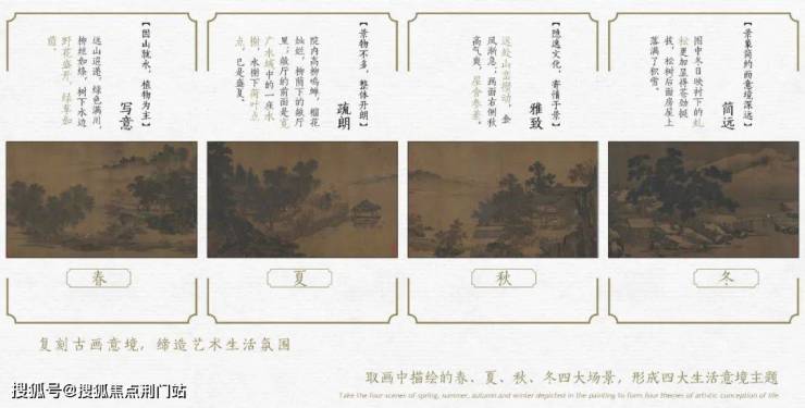 杭州古称钱塘,为南宋都城,宋朝在文化艺术领域的成就登峰造极,无论是在文学、绘画、建筑方面都有了质的飞跃,起到了承上启下的特殊地位。项目整体遵循宋代江南水乡的古城肌理,展现深宅贵府的隐奢调性,营造出“居山水、观天地”的空间意境。