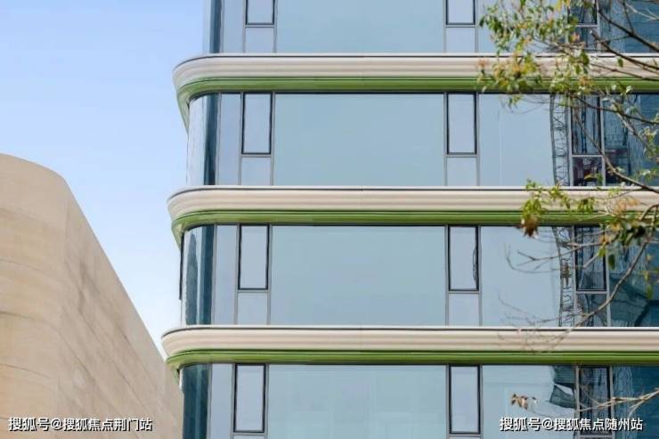 保利·奥博天珺的建筑外立面,依然是非常杭州的表达。镶嵌在繁复线条中的绿色陶板,用造价昂贵的曲线,刻画出了龙井春芽的神韵。