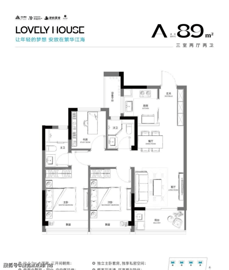 部分房源配置三玻两腔low-E玻璃+中置百叶,隔音隔热效果大升级