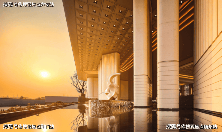 横展近80米的超大门庭,香槟金铝板勾勒的星空穹顶下,灯带如西湖水波般流转蜿蜒。