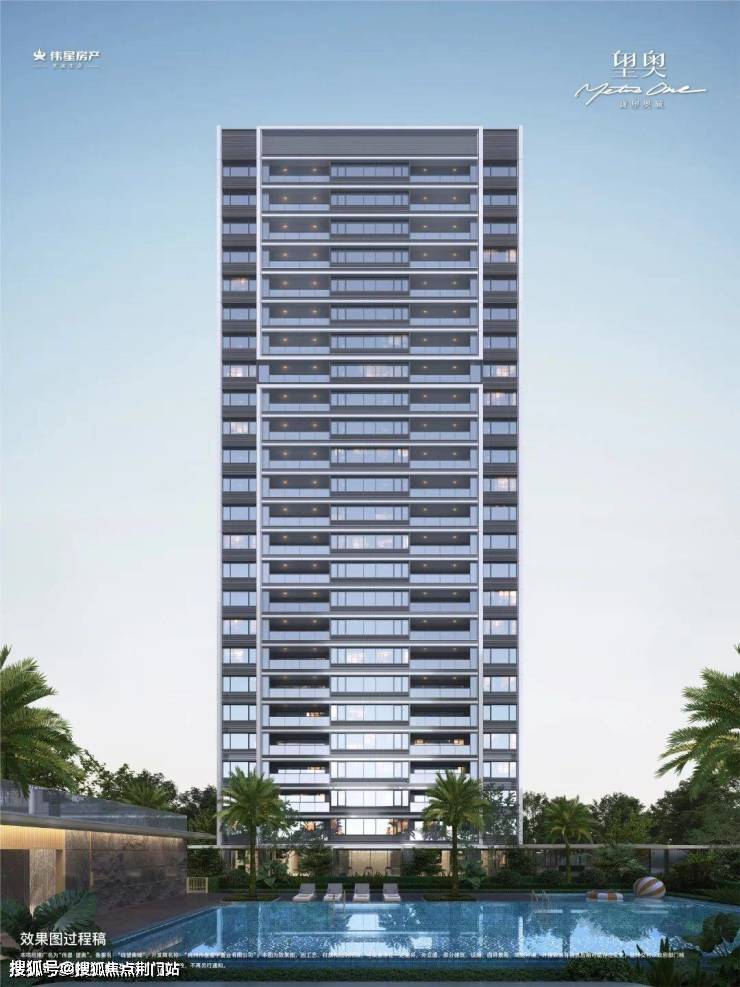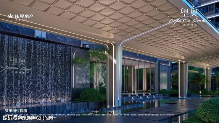 三面铝板立面,大面积玻璃运用,玻璃面连续长度最大约9米;住宅顶部“悬浮云端”格栅塔冠设计,闪耀建筑的第五立面。约40米酒店式大门:以香港扎哈The Henderson为灵感来源,采用648块三角形宝石切割面打造矩阵高奢吊顶,规划高约5.6米,宽约40米的酒店式大门