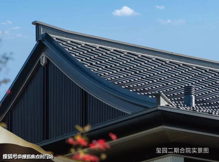 在建筑营造上,由GAD张微老师执笔,延续和家园“章法天成,自然而然”理念,玺园二期合院取法宋代郭熙的“三远论”,结合正脊、戗脊、博风板、悬鱼、鱼鳞瓦等经典中式元素,并巧妙运用石材、玻璃、铝板等材质,诠释中式建筑的虚实相生,平远雅致,带来丰富的视觉体验。