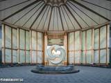 价值百万的造型黑松,采用98片透光石雕镂“金舟”为顶的凉亭……