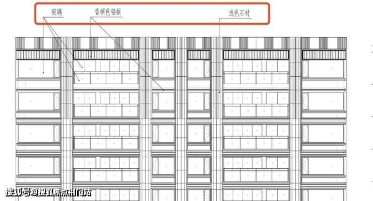 1、米色石材搭配香槟色铝板,和华润钱二6万+豪宅翡云润府有点像;