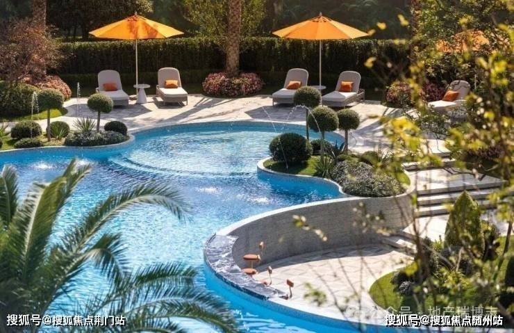在下沉式庭院的背后,还做出了一片层次丰富的景观,有叠水、有大草坪,还有一大片滨江标志性的「蓝宝石」戏水池,放在这里,跟钱二、奥体的新盘都没什么区别了。
