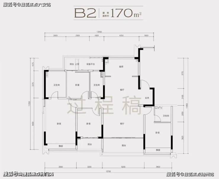 170方户型,是南厅139方户型的放大款,次卧多了一个套房空间。