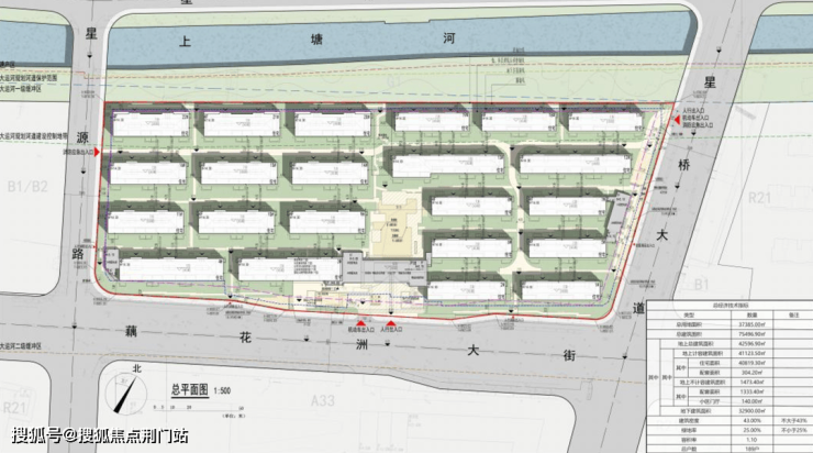 总建筑面 积为75496.9㎡,其中地上建筑面积42596.9㎡,地下建筑面积 32900㎡,容积率1.1,绿地率 25%,建筑密度43%。平面布置和建筑外形详见附图。根据公示,规划22幢排屋。