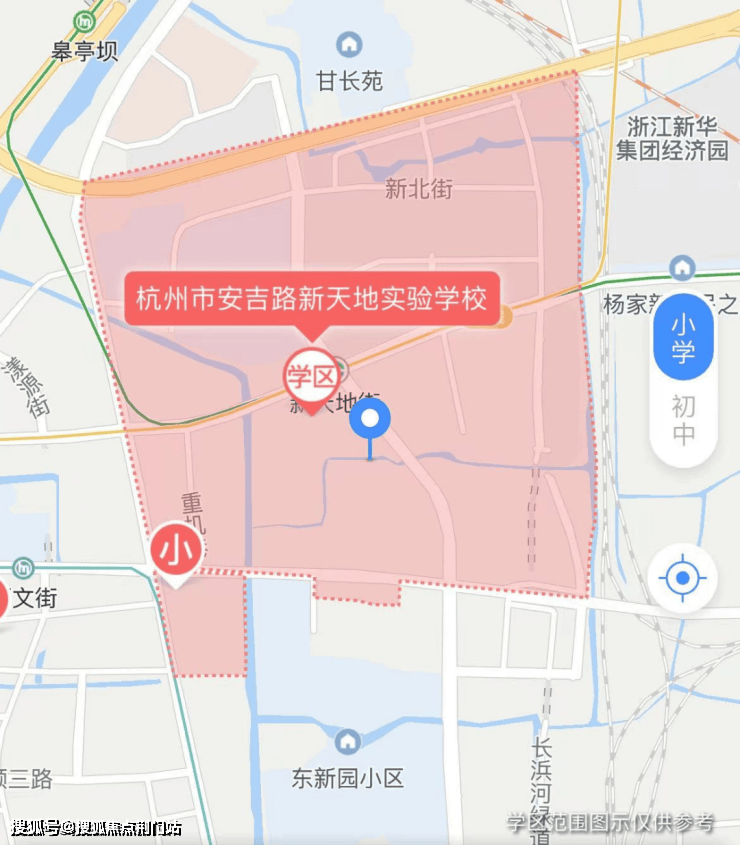 关于学区:新房无学区,待交付后由教育部门统一划分,可根据就近原则来做参考,根据目前的学区划分情况来看,新地块是在杭州市安吉路新天地实验学校的范围内: