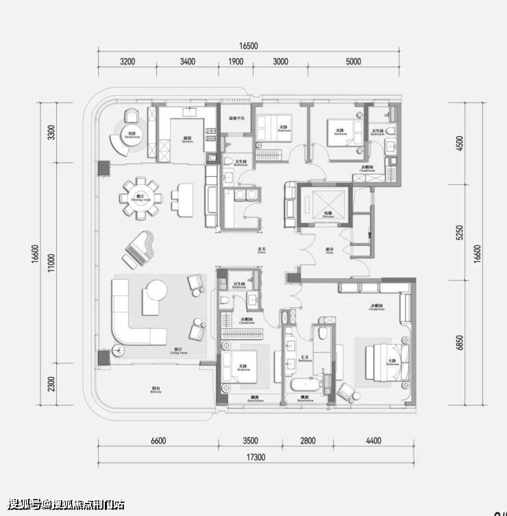 ▲建面约220㎡户型图过程稿,非交付标准