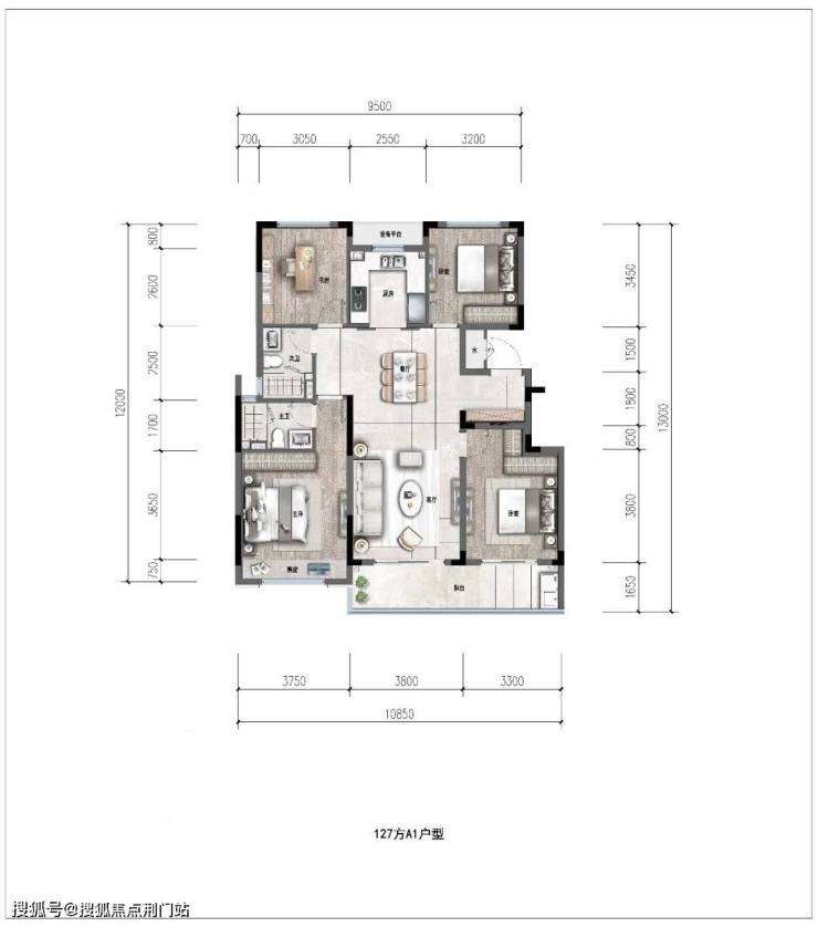 约127㎡经典四叶草户型,全明通透,4个功能间分别位于四角,正好契合了当下注重隐私的居住潮流。