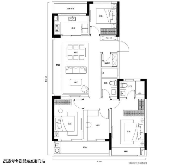约105㎡难得设计出一体化餐客边厅,同样带约6.5米的少见长阳台; 约128㎡是更宽舒的四房两卫,拥有近30㎡开阔边厅和三房朝南明媚格局,入户还有储藏间。