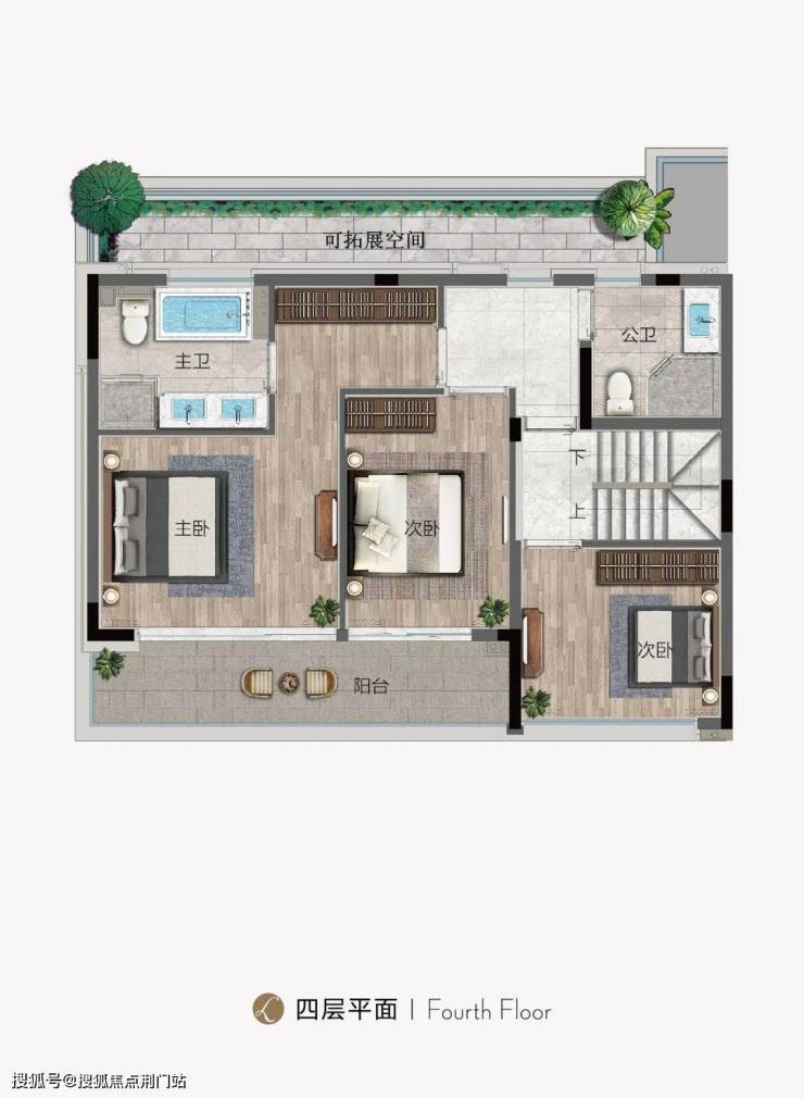 上叠:以195㎡的五房四卫,除了二层规划了朝北露台外,三层的空中阁楼,从多功能空间推门而出,竟然是一个“270°环幕式”生活露台,面积有70㎡左右。它可以是你抽离纷杂尘世的秘密花园,也可以是朋友聚会的快乐之地。
