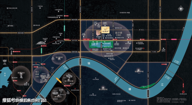 项目位于钱塘区地处金沙湖板块核芯区,一脉承接钱江新城、钱新2.0,承载钱塘区大量企业总部需求的同时,又可坐享核心地段的环湖高光配套赋能,杭州第四座CBD-金沙湖商务区已然成形。