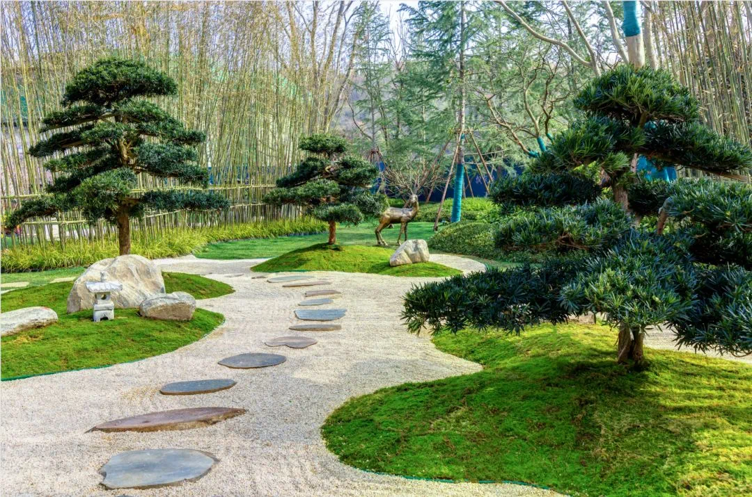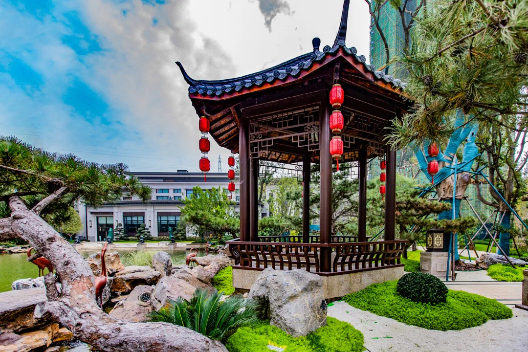 园林拥有近百种名贵树种:例如银杏、国槐、皂角、罗汉松等,均采用全冠移植,原生态地移植到小区里,将植被、水景、景观小品相互搭配、充分融合,尽显中式园林的尊贵和优雅。