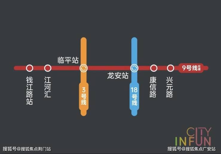 项目横跨地铁9号线兴元路站(在建)、康信路站(在建)两大站点,以轨道打破壁垒,一条地铁直达钱江新城、城东新城、滨江、西湖等高能区域,更高效的日常通勤外,还能享受到一脉市心的生活配套。