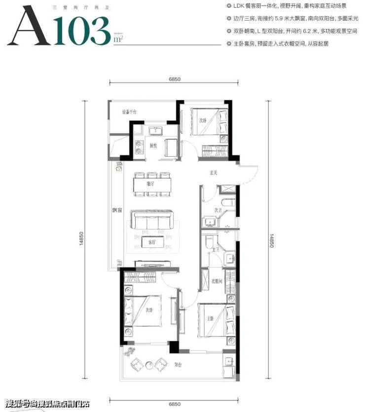 建面约103㎡在其他楼盘一般是中间套,但在月琉璃是带约5.9米大边厅的“派对级边套”。
