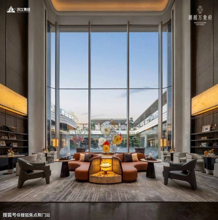 潮越万象府请了gad蒋愈、OGA邓代明、朴悦郭子伟三位大师,在示范区里下了血本。约37米进深的归家门头,灵感源自迪拜卓美亚港湾酒店,六棵变异银海枣价值超百万,头顶的“金顶官檐”与萧山开元大酒店遥相呼应。