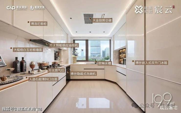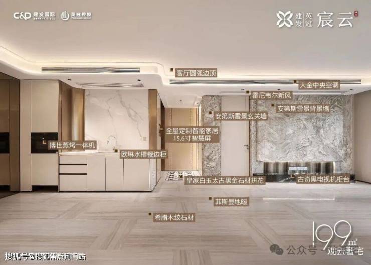 在室内精装上,宸云也采用超高的精装标准:大金中央空调、霍尼韦尔新风、博世洗碗机、博世蒸烤一体机、方太油烟机、方太燃气灶等,餐等运用大面积石材,堪称“奢石博物馆”,全屋还定制了让生活更有秩序和整洁的收纳体系,高层户户赠送储藏柜。