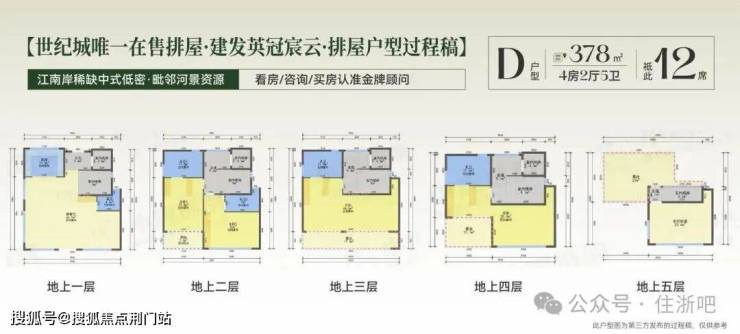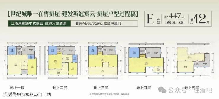 【排屋层高】1-2层约4.12m,3-4层约4m,5层约3.77m