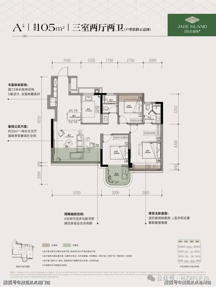 建面约105-172㎡轩敞户型,以最大近100%实际使用率实现尺度越级。