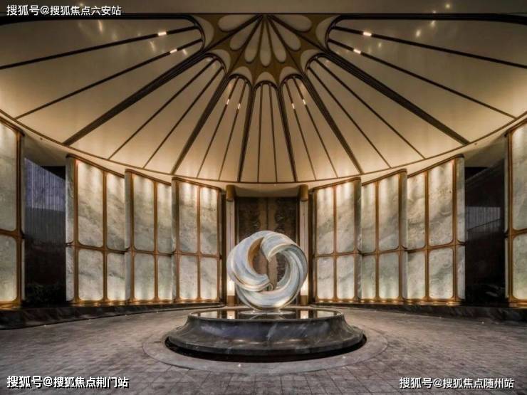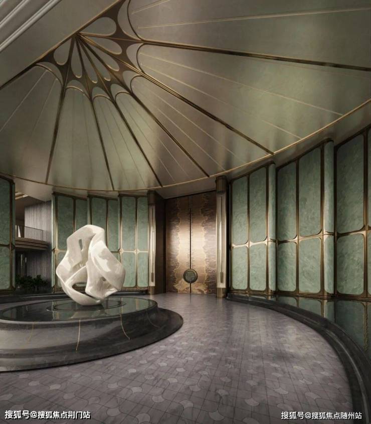 主入口采用约9.6米高黄铜大门(朱炳仁团队手工锻造),搭配11.5米酒店式落客门厅及百达翡绿奢石屏风,以“折扇”“钱塘潮纹”等元素诠释江南文化。