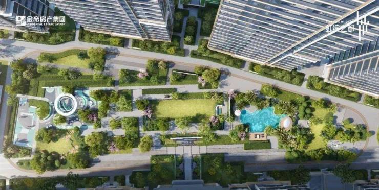 项目1期8栋住宅建筑呈南北排布,围合约13000方景观中庭。从鸟瞰图来看,虹缤之都9#楼既与银湖公园紧邻,向湖景公园敞开怀抱,向南又俯小区中央园景。自然形成以“园”为庭,以“湖”为院的“前庭后院”双乐园体验。