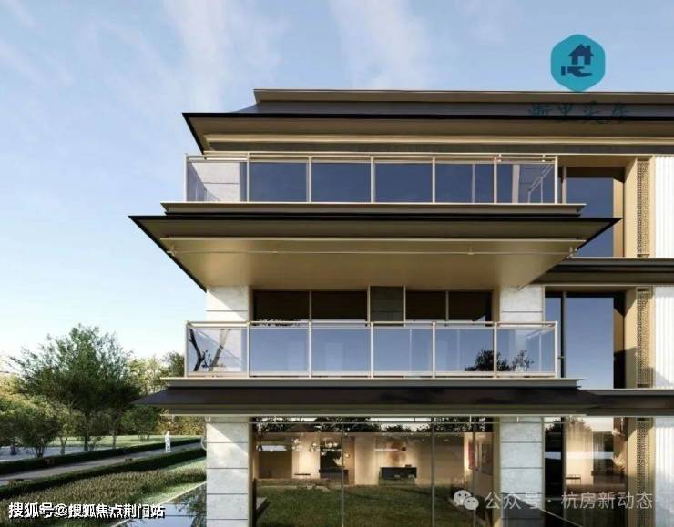 解构重檐、挂落、悬鱼等中国古代代表性建筑元素,并提取鸡血石、天目盏等吴越瑰宝之形意 越秀·观锦宸樾府