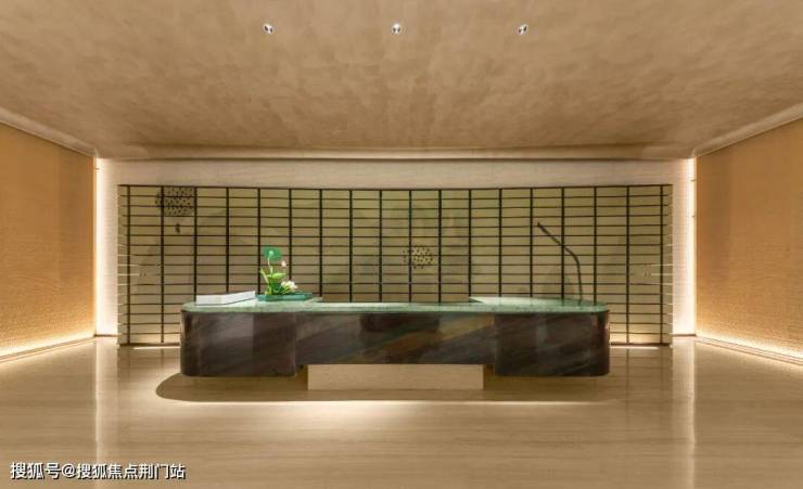 穿过景墙,是通高的入户大堂,有十足的重奢酒店感。大堂的背景墙是一幅「青荷」——保利邀请了美术大师陈家泠,把代表杭州的荷花意象,填入了示范区的各个空间。原本是「开门见山」的私密照壁,就这样有了「归家见荷」的喜悦。