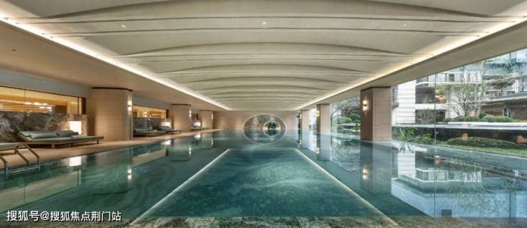 当然了,高端楼盘标配的室内恒温景观泳池,单价3字头的天奕也有,同样正对着整面的庭院景观。