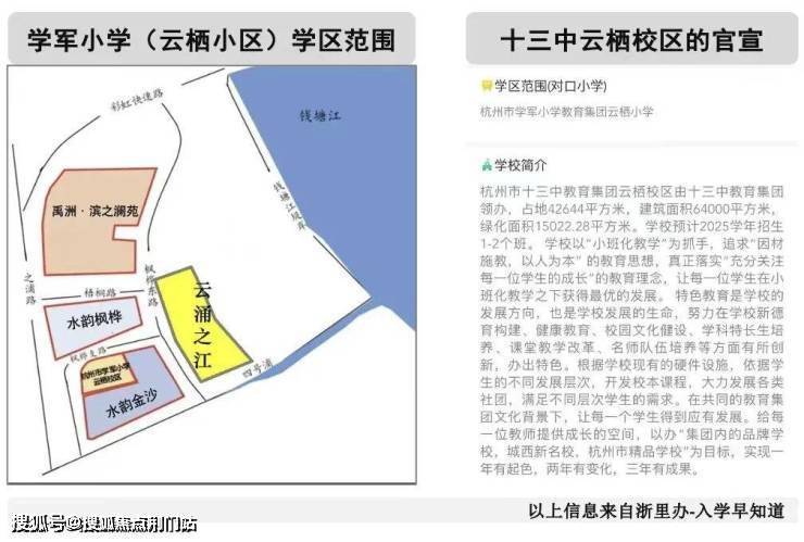 在云涌之江首开时,像引入在建十三中的教育资源,更多的是传闻与推测,而现在可以说,云涌之江是在售限价的学军云栖小学+十三中的学区范围内的唯一新房。