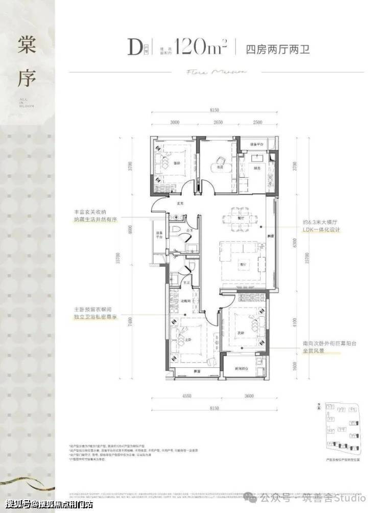 项目总建面约9万方,规划11幢12-16层纯高层,采用"南低北高"的错落布局,建筑限高50米,楼幢间距预计较为开阔,错落式布局,打造了两大主题园林空间。推出建面约99㎡与113㎡精致三居室,以及建面约108㎡、120㎡、128㎡、139㎡宽敞四居室,满足不同家庭需求。