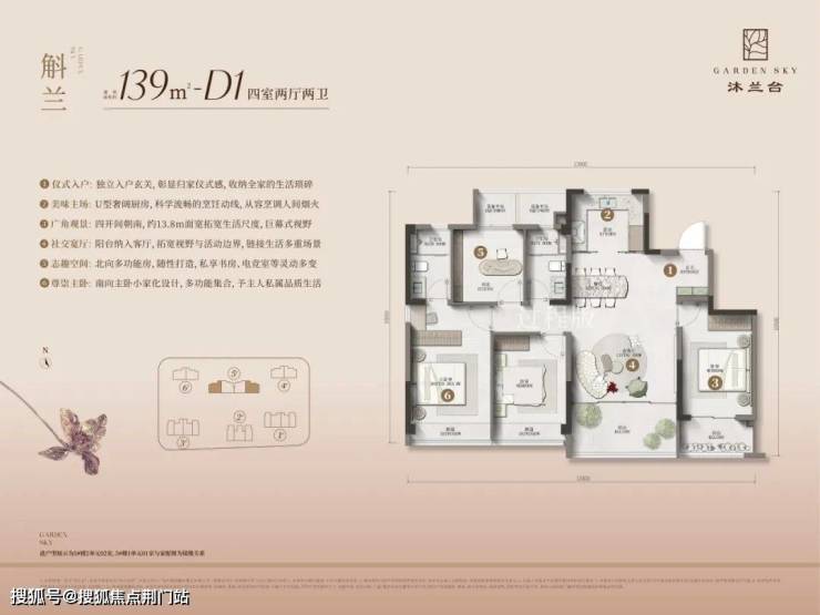 沐兰台建面约139㎡户型室内空间详解
