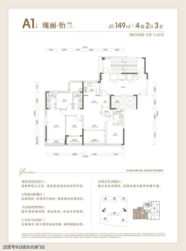 建面约149方户型,高配入门款改善选手: