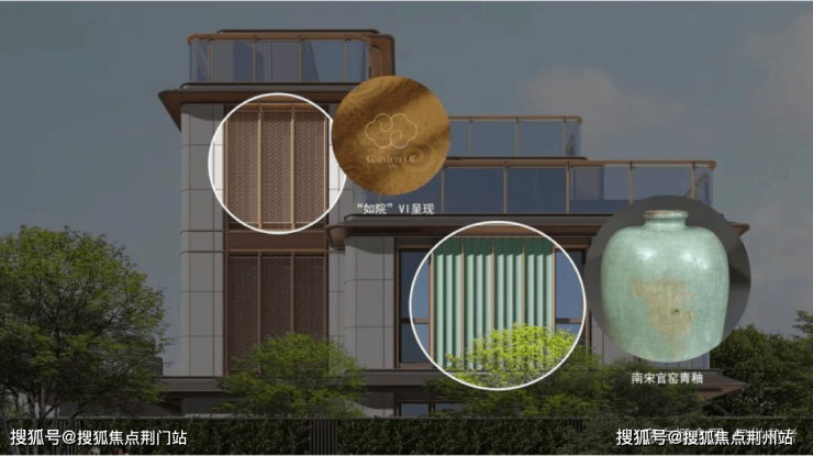 基于杭州曾经作为南宋古都的气候环境与文化底蕴,如玺华院选用相较石材颜色更加丰富、轻巧,且可防尘、防潮、降噪、自洁的环保天青陶板,经过20多道工序烧制、仅30%成品率的投入和挑战,将南宋官窑汝窑“雨过天青云破处”的温润质感复刻于外立面,打造出“会呼吸的墙体”;搭配紫点金麻石材与如意云纹镂空格栅铝板,更添尊贵雅致。