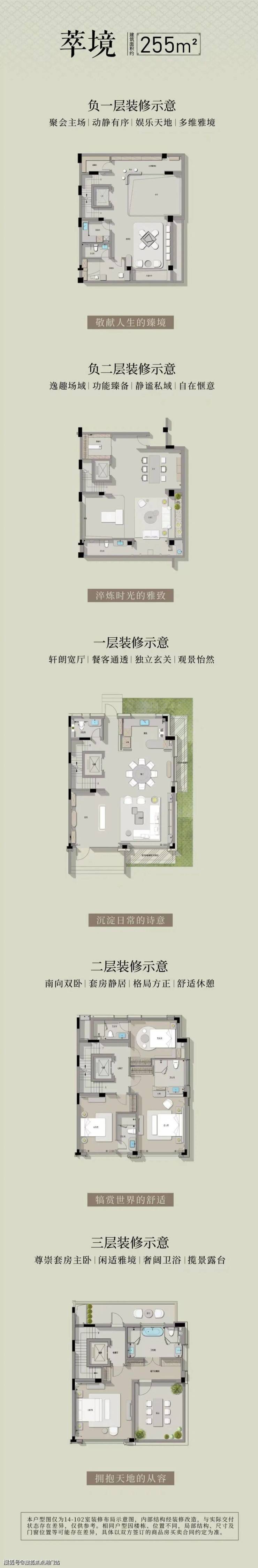 255㎡边套:定位 “阔绰改善型院墅”,庭院面积扩展至 140㎡,可容纳更多个性化设计(如定制花池、小型水景);一层空间开阔,搭配全景采光设计,阳光通透性更佳;三层设南北双露台,一侧可种绿植,一侧可摆放休闲家具;地下空间同样支持 5.8 米层高拓展,能满足家庭多元需求(如影音、储物、专属工作室等),动线设计兼顾实用性与私密性。