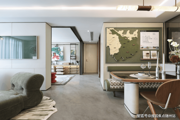 客厅背景墙的吊柜与储物格,展示柜的灯带与玻璃门,为收藏的Labubu提供了最佳舞台。这种“情绪收纳”的逻辑,让每一件物品都找到归属,也让生活回归纯粹。