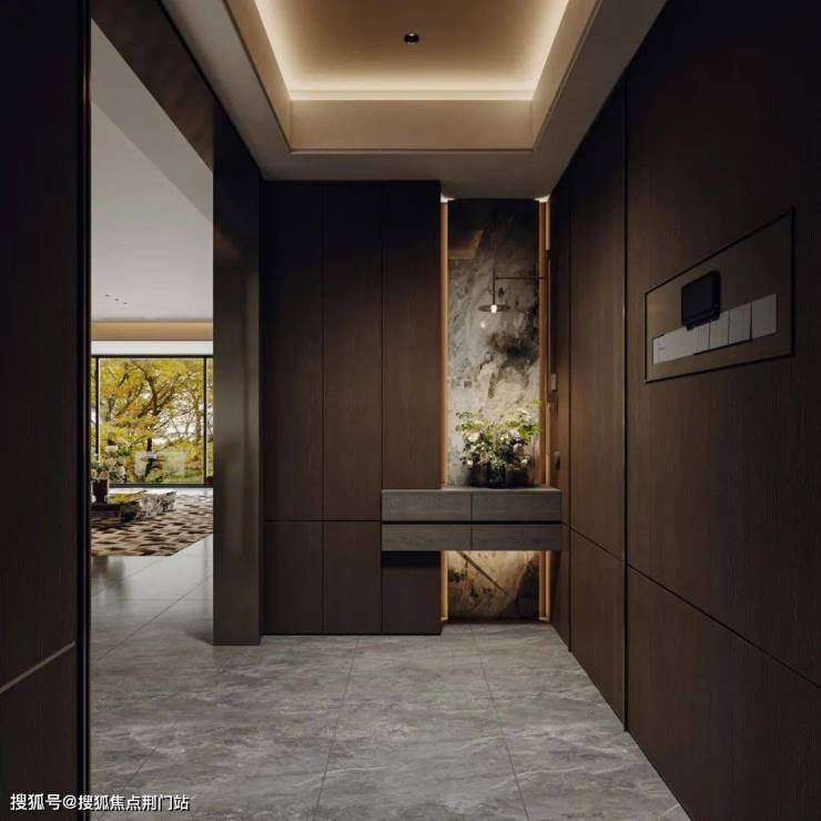 建面约189㎡户型均采取 一梯一户设计,出了电梯就私享一方前厅;由 独立玄关入户,旁边就是 储物间,快速解决鞋帽、包包及各种大小物品的收纳。