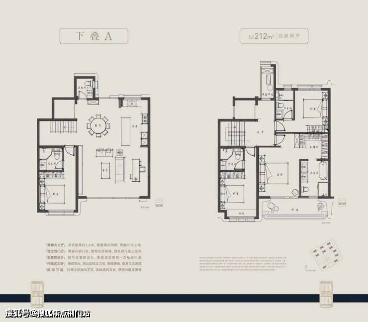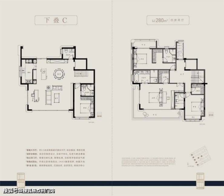 户型方面,主力建面约210-280㎡四层叠墅,采用全套房设计,朝南大开间阳光满堂,主卧“小家化”,步入式衣帽间和独立卫浴间兼备,更大尺度的面积,更开阔的家庭社交区,更舒适的套房空间.