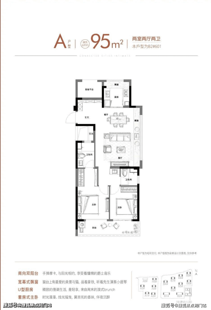 项目此次加推B区B5、B7幢,紧邻戏水池,位置很不错,主力户型建面约95㎡,设计也可圈可点。