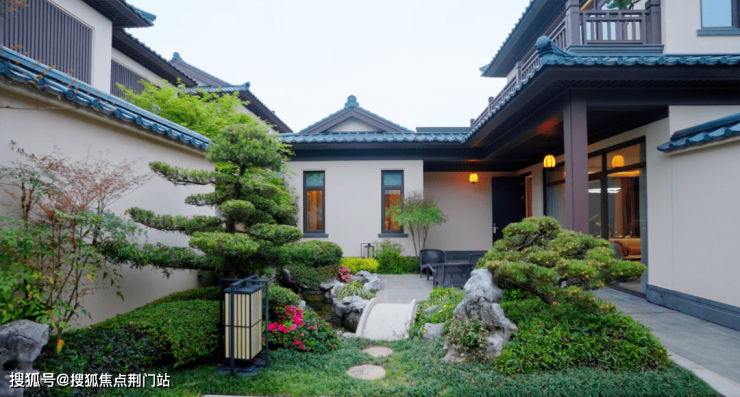 淡蓝的和瓦,舒展的简唐风,配合仅1-2层的建筑形制,合院区容积率约0.3。 这是九溪玫瑰园、桃花源这类大独栋住区才有的指标,早已绝迹多年。