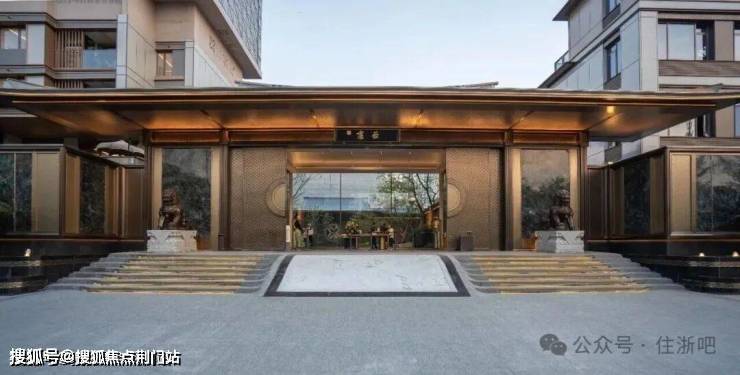 归家的第一重仪式感,便是那气势恢宏的大门。歇山顶的形制,在古代建筑等级中象征着崇高的地位,加上近51米的宽度与约11米的高度,配合门前蕴含“钱塘潮涌”寓意的定制水纹御道,以及庄严守护的成对黄铜狮与苍劲罗汉松,归家的尊崇感油然而生。