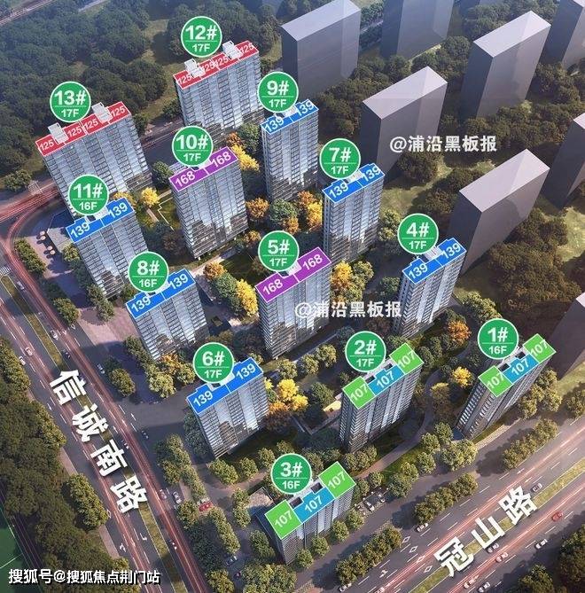 聊户型之前,先来看下楼幢分布,项目规划了13幢共518套(16-17F)高层,10幢2梯2户四房,3幢2梯3户三房。
