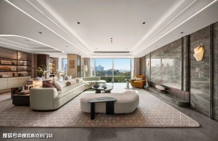 每户电梯口装修的同样考究,地面的拼花,头顶的圆弧形吊顶。将来业主只要置一餐桌,就能达到排屋、叠排才有的那种露台聚餐氛围。或者用来养花种草、下棋看书,也都是好去处,生活的乐趣翻倍。