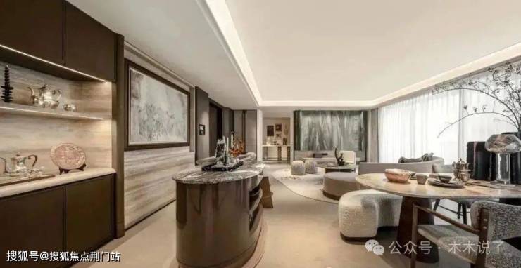 其中下沉水院作为关键归家场景之一,以水为引,叠瀑飞流,对景廊架,还有风景连廊,搭配波光粼粼的镜面水景和绿植点缀。架空层空间打造成书吧、私宴接待厅等友邻生活空间等。
