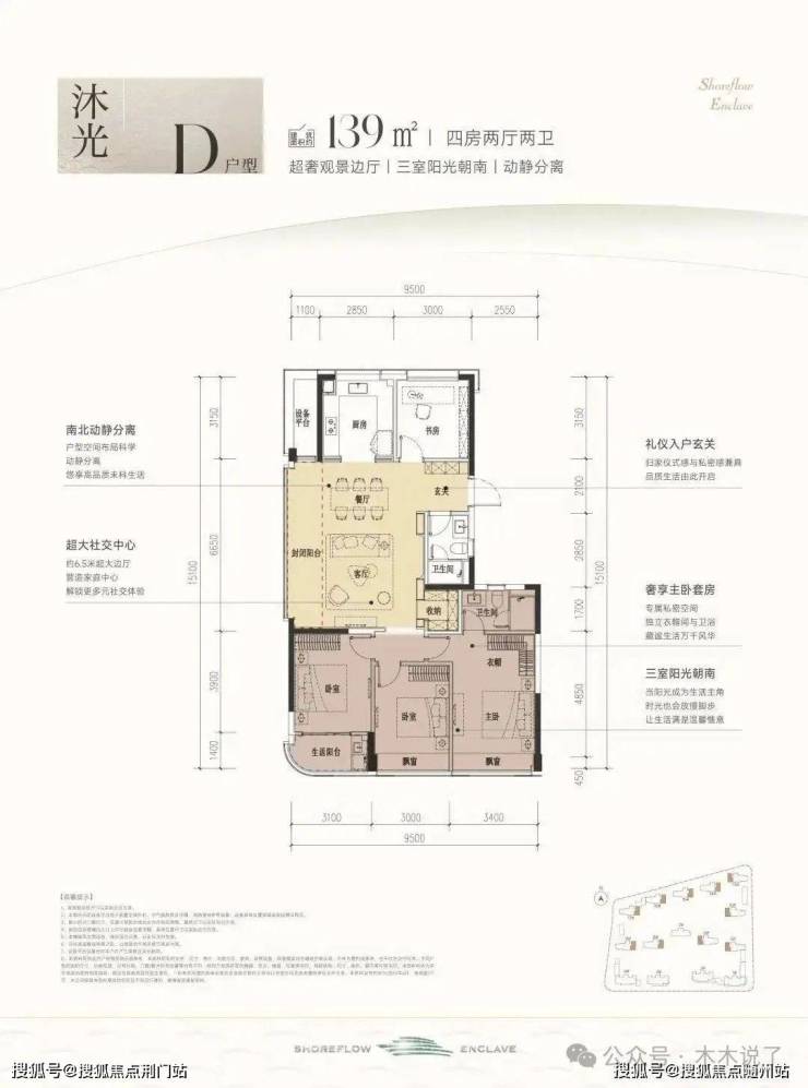 #滨江时舟里,这款户型堪称四开间朝南的“流量王者”,南向面宽约13米,双联阳台+双飘窗设计,视野和采光优秀;套房主卧、双阳光次卧,颇有大平层的气势。